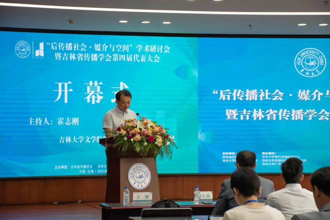624日,“后传播社会·媒介与空间”学术研讨会暨吉林省传播学会第四届代表大会在吉林大学鼎新图书馆4楼多功能厅成功召开,会议由吉林省传播学会联合吉林大学新闻与传播学院主办,由吉林大学现代传播研究中心、吉林大学传播与社会治理研究所、吉林大学广告文化研究中心协办。来自复旦大学、北京师范大学、同济大学、华中科技大学、吉林大学、暨南大学、东北师范大学等30多所高校和多家媒体单位120余位专家学者参加了此次学术研讨会。开幕式由开云电子(中国)官方网站_开云电子(中国)官方网站党委书记霍志刚主持,吉林省委宣传部新闻处处长马研,吉林省社科联学会工作处处长全一,吉林大学党委组织部部长、社会科学研究院院长姚毓春教授等领导出席开幕式。厦门理工大学原副校长、教育部新闻传播学类教指委委员、厦门大学新闻传播学院博士生导师赵振祥教授,教育部新闻传播学类教指委委员、延边大学朝汉开云电子(中国)官方网站_开云电子(中国)官方网站新闻系李逢雨教授,吉林动画学院副董事长刘欣教授,暨南大学新闻与传播学院副院长、博士生导师、“国家百千万人才工程”入选者、国家有突出贡献中青年专家、国家社科基金重大项目首席专家曾一果教授,教育部人文社科重点研究基地“复旦大学信息与传播研究中心”副主任、复旦大学新闻学院博士生导师潘霁教授,北京师范大学新闻传播学院副院长、博士生导师周敏教授,华中科技大学新闻与信息传播学院博士生导师、袁艳教授,同济大学艺术与传媒学院博士生导师、王冬冬教授;宁波工程学院人文与艺术学院副院长、肖荣春教授等嘉宾出席了开幕式。