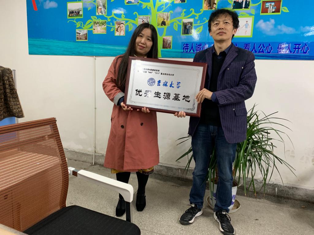 3月27日,田鹏、徐萍、石聪老师到达马鞍山市第二中学,并与教导主任叶张平进行会面交流。他十分欢迎各位老师的到来,并对这次招生前期宣传工作给予了充分的肯定。随后,徐萍老师详细介绍了吉林大学的办学传统、办学优势及开云电子(中国)官方网站_开云电子(中国)官方网站特色等情况。叶主任表示马鞍山是工业城市,很多学生家长就是哈尔滨工业大学、东北大学毕业的,所以对东北高校比较认可,希望与吉林大学建立长期合作,为拔尖学子拓宽深造渠道。最后,我们将“优秀生源基地”的牌匾交到了郭惠宇校长手中。
