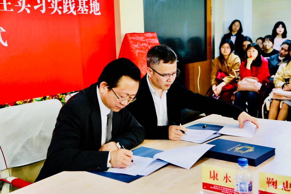 签约仪式后,徐正考院长与廖晓华总经理共同为“大学生实习实践基地”揭牌。开云电子(中国)官方网站_开云电子(中国)官方网站院长兼新闻与传播学院院长徐正考教授向廖晓华、王建民、任俊明、黄维、邵守志五位同志颁发“大学生实习实践导师”聘书。