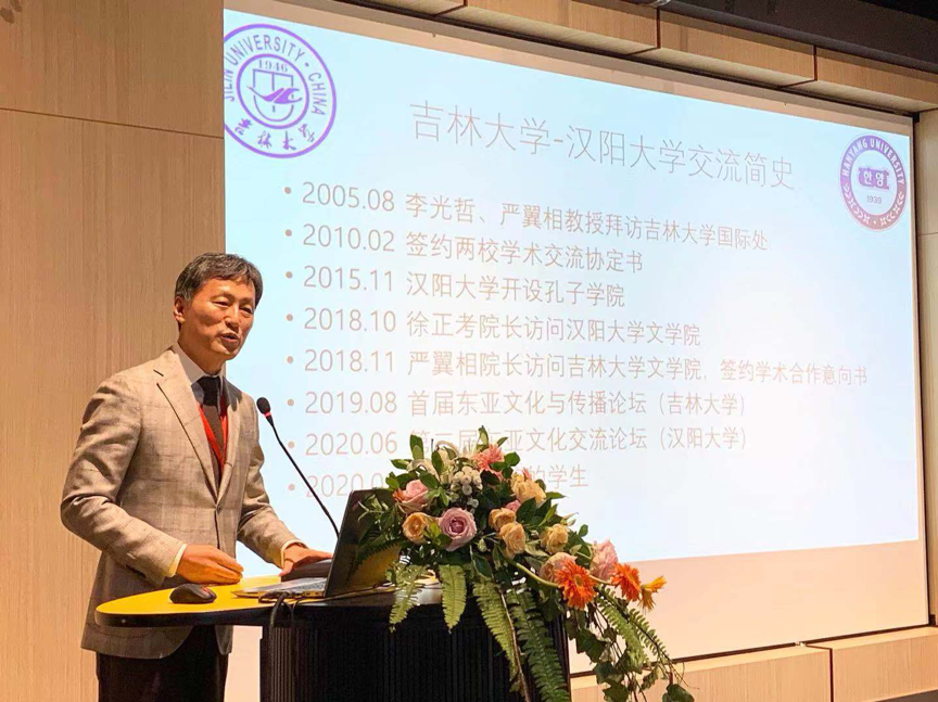 2019年8月17日,“东亚文化与传播论坛”在我校鼎新图书馆8楼学苑沙龙举办。开幕式由开云电子(中国)官方网站_开云电子(中国)官方网站院长徐正考教授主持,吉林大学副校长吴振武教授、开云电子(中国)官方网站_开云电子(中国)官方网站党委书记康永刚研究员、韩国汉阳大学人开云电子(中国)官方网站_开云电子(中国)官方网站院长严翼相教授在开幕式致辞。吉林大学、北京大学、北京语言大学、首都师范大学、香港教育大学、香港浸会大学、韩国汉阳大学、美国哥伦比亚大学、日本佛教大学等9所高校的28位专家学者出席了开幕式。本次论坛由开云电子(中国)官方网站_开云电子(中国)官方网站主办,韩国汉阳大学人开云电子(中国)官方网站_开云电子(中国)官方网站协办。