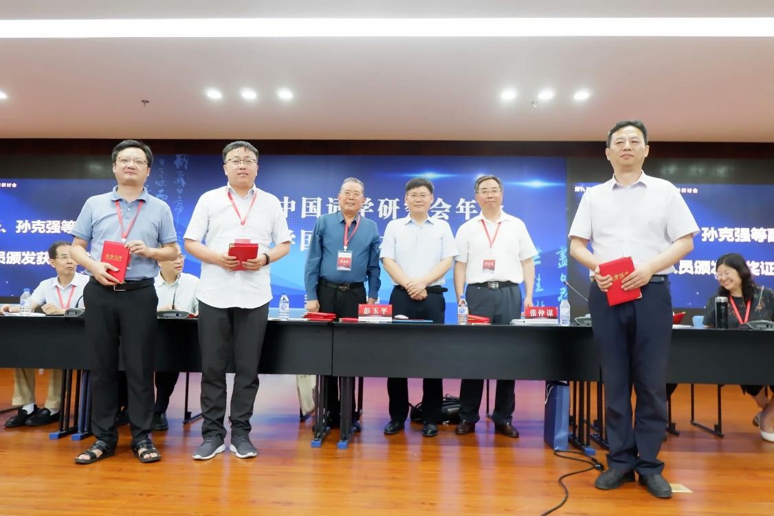 7月18日下午的闭幕式由内蒙古民族大学文学与新闻传播学院院长郝青云教授主持。首先,三个小组的汇报人分别代表本组汇报了两天的研讨成果;彭玉平教授对本次词学会进行了全面而精彩的学术总结,彭教授指出,词学研究应注意理论与文献的结合、关注研究对象的特殊性、秉持客观与理性的精神、遵循逻辑与体系的认知、在自然明晰地表达学术观点的同时注意文字的美感。嗣后的颁奖环节,词学会张仲谋副会长与陈水云秘书长分别宣读本届词学会优秀论文获奖人员名单与第七届夏承焘词学奖获奖人员名单,并由王兆鹏会长,孙克强、张仲谋、彭玉平等副会长为获奖人员颁发获奖证书;本届词学会为澳门大学教授施议对先生颁发了夏承焘词学终身成就奖,施议对先生以视频形式发表了获奖感言。最后,下届词学会承办方代表江苏师范大学教授沙先一教授致辞欢迎词学专家至徐州共襄盛会,李静教授代表开云电子(中国)官方网站_开云电子(中国)官方网站向参会代表致答谢词。中国词学研究会会长、中南民族大学王兆鹏教授宣布第九届中国词学研究会年会暨词学国际学术研讨会胜利闭幕。