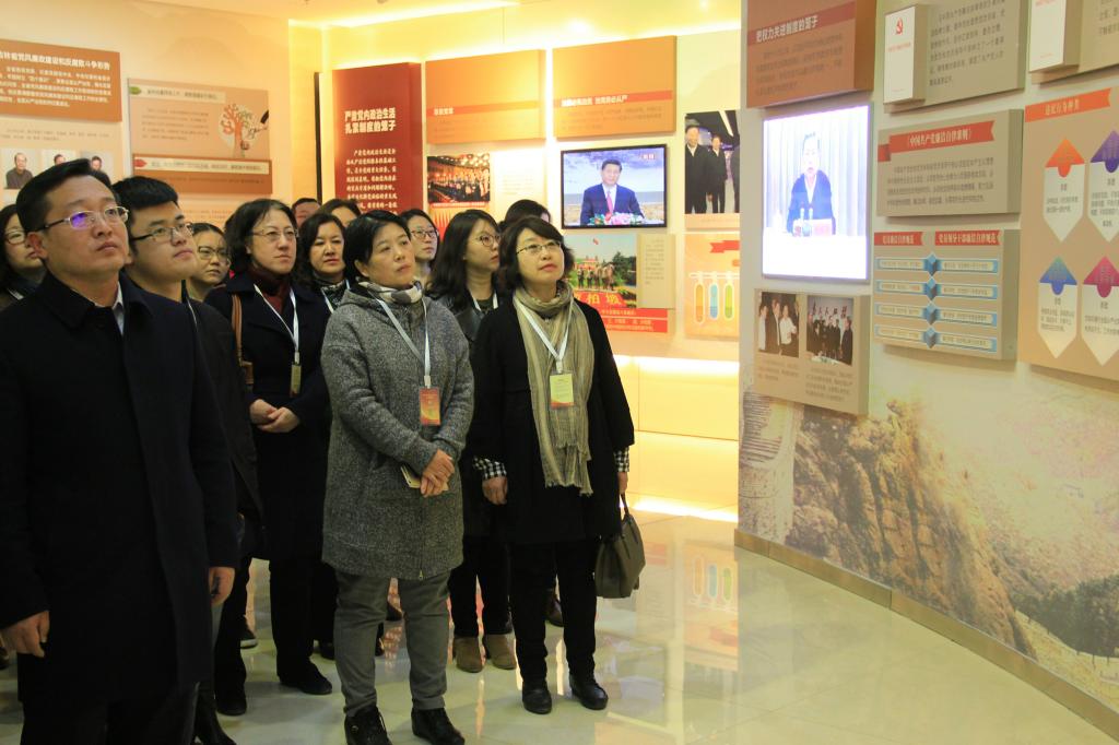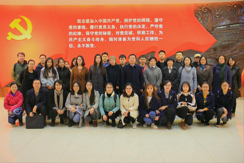图1:开云电子(中国)官方网站_开云电子(中国)官方网站党委书记康永刚同志(前排左一)、党委副书记兼纪委书记郝淑媛同志(前排右一)、党委副书记刘卓(前排右二)等与师生党员一起参观主题展览。