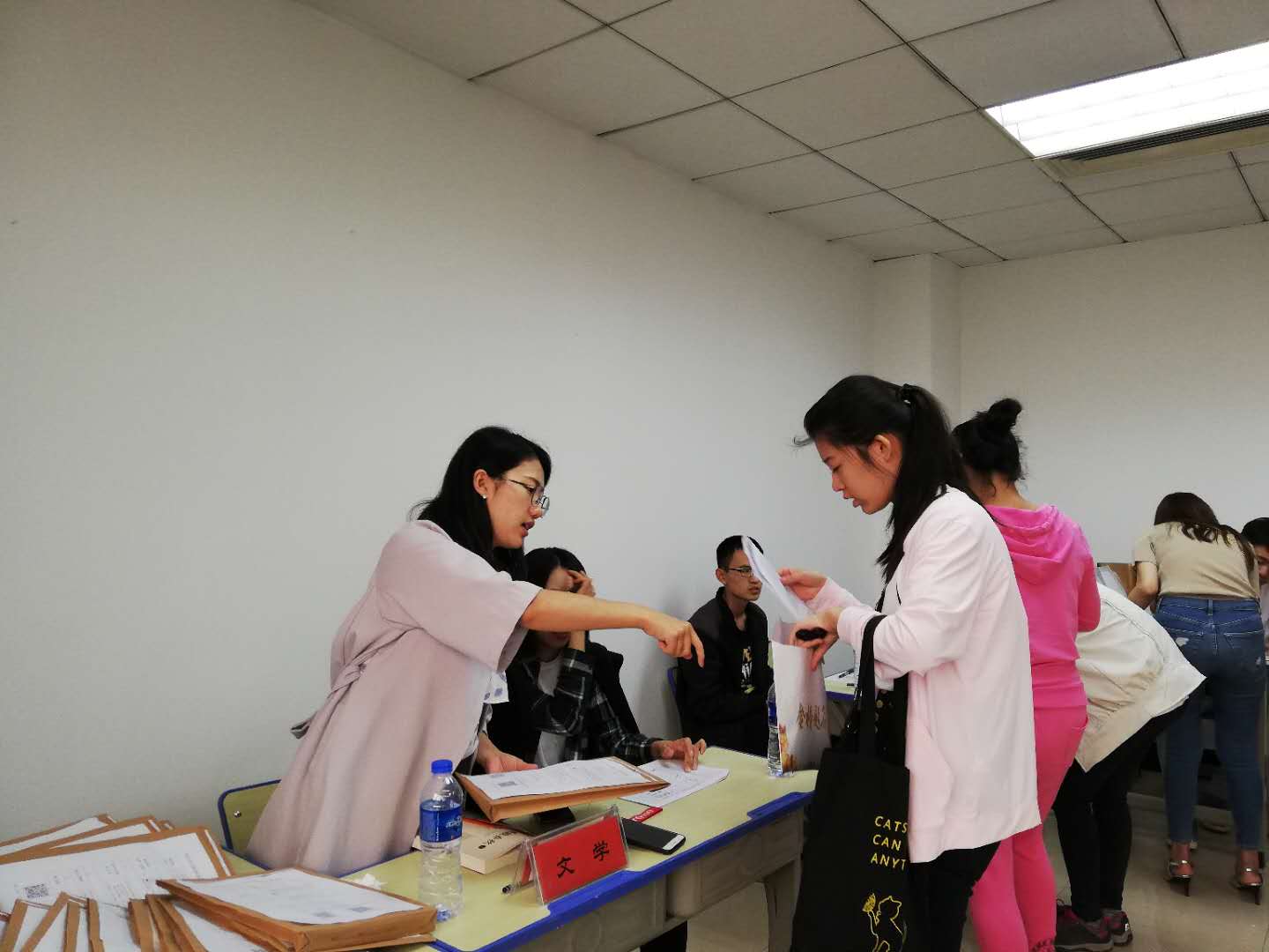 一张新生报到流程图、一个档案袋,这是新生入学的伴手礼;“同学,你看一下档案袋里面一共有四样东西,你看看缺不缺”这是来自师哥师姐的关切口令之一。接下来,婚育情况调查表、党组织关系凭证、还款协议书等报到材料逐一核对过,再由本人签字,领取学费收据,报到工作就算完成了。