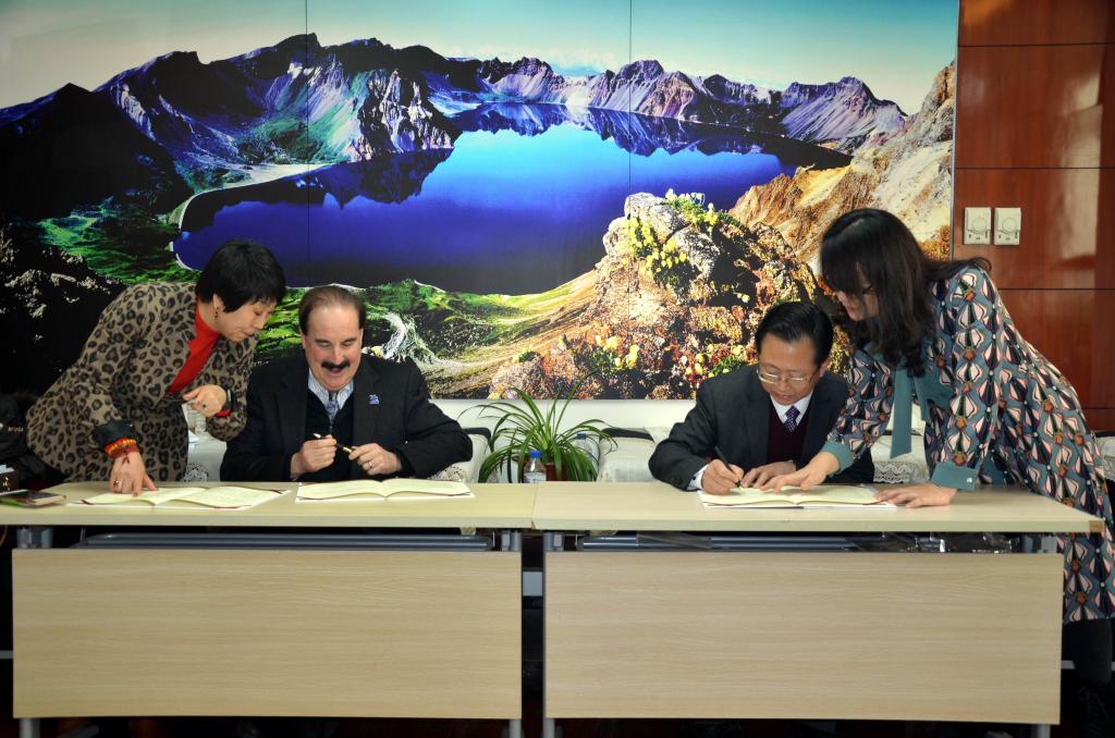 图2:马克院长(左二)与徐正考院长(右二)签署肯塔基大学文理学院与开云电子(中国)官方网站_开云电子(中国)官方网站合作意向书。