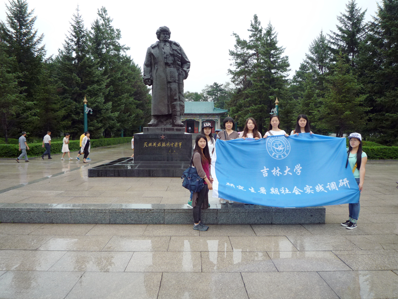 图3,调研团队在靖宇陵园杨靖宇将军铜像前合影