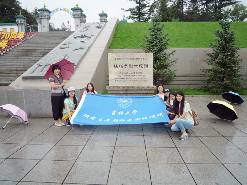 第二站,靖宇陵园。8月4日,通化市的小雨,淅淅沥沥几乎下了一整天。我们冒雨来到靖宇陵园。陵园位于通化市浑江左岸的山岗上,是安葬东北抗日联军第一路军总指挥兼政治委员杨靖宇将军的地方。陵园建成于1957年9月,于1961年被吉林省人民委员会公布为第一批重点文物保护单位,1986年经国务院批准公布为第一批全国重点烈士纪念建筑保护单位,目前也是全国首批中小学生爱国主义教育基地和爱国主义教育示范基地。2004年经中共中央批准,投资4000万元对烈士陵园进行了大规模的维修改造和扩建,占地18万平方米,在保护陵园原有风貌不变的基础上,新建了“东北抗日联军纪念馆”,建筑面积3800平方米,2005年建成开放。在靖宇陵园,调研团队参观了东北抗日联军纪念馆和四个陈列室,参拜了杨靖宇将军陵堂,祭拜了杨靖宇将军墓。同时,在靖宇陵园“东北抗日联军纪念馆”还进行了观众问卷调查(图2—图4)。