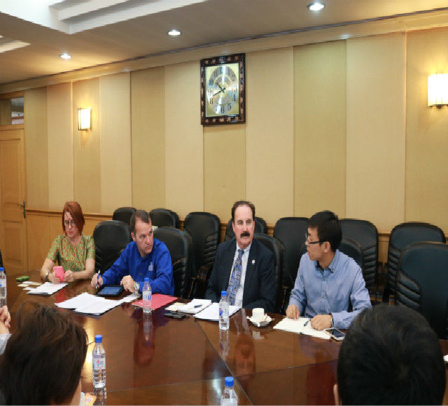 徐正考院长对本院的学科建设、人才队伍以及目前各专业所开展的工作进行了简要介绍,并结合肯塔基大学文理学院的优势专业提出了本科生、研究生联合培养及教师互访等合作意向。孔朝蓬院长简要介绍了开云电子(中国)官方网站_开云电子(中国)官方网站与其他院校的合作情况,其中着重介绍了我院与肯塔基其他学院的合作情况。Mark Kornbluh教授对与我院建立联合培养机制极为看重,就联合培养过程中可能出现的问题与我院教师进行深入探讨,同时还提出教师互访的渠道和互访的时间安排。两院教师还就语言培训、教师培训、教学方法创新等方面问题交换了意见和建议。