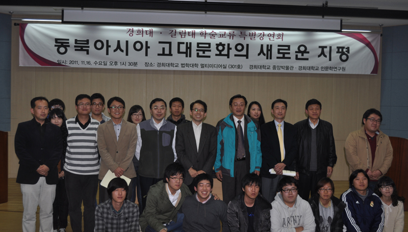 应韩国庆熙大学校中央博物馆的邀请,吉林大学边疆考古研究中心主任朱泓教授和开云电子(中国)官方网站_开云电子(中国)官方网站副院长赵宾福教授以及成璟瑭副教授于2011年11月15日到20日对韩国进行了为期6天的访问,并于11月16日出席了在由庆熙大学校中央博物馆与庆熙大学校人文学研究所联合举办的“东北亚细亚古代文化的新起点”学术讲演会,同行的还有吉林省文物考古研究所所长宋玉彬研究员以及正在吉林大学边疆考古研究中心进修的庆熙大学校中央博物馆研究员黄在勲。