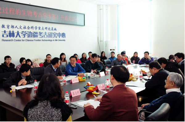 本次论证会特邀了五位论证专家对该项目实施工作中可能遇到的具体问题进行论证。专家组组长为中国科学院研究生院科技史与科技考古系主任王昌燧教授,成员分别为中国人民大学中国北方民族考古研究所所长魏坚教授,吉林省文化厅文物管理总监、吉林省考古学会理事长金旭东研究员,吉林大学资深教授林沄教授,吉林大学匡亚明特聘教授魏存成教授。吉林省哲学社会科学规划办公室金中祥主任和吉林大学社会科学处霍志刚副处长到会指导。项目组成员及吉林大学边疆考古研究中心、吉林大学生命科学学院及相关院所60余名师生出席了会议。