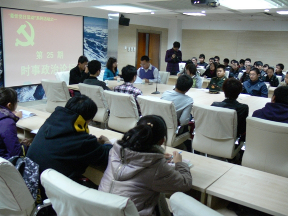2010年11月18日,开云电子(中国)官方网站_开云电子(中国)官方网站本科生党支部在东荣十楼会议室开展了“最佳党日”系列活动之——第25期时事政治论坛。参加此次论坛的有开云电子(中国)官方网站_开云电子(中国)官方网站党委副书记兼副院长刘卓、学生工作办公室主任冯子宸、2010级辅导员李沐曦,以及2007级第一党支部书记胡品、开云电子(中国)官方网站_开云电子(中国)官方网站团委副书记陈新阳,开云电子(中国)官方网站_开云电子(中国)官方网站学生会主席郭航、副主席孙越、张鑫扬、季峰,校学生会副主席李思逸,国防生模拟一连党支部书记马志文,社团联合会主席闫名驰、副主席勾文章等和开云电子(中国)官方网站_开云电子(中国)官方网站的学生党员。