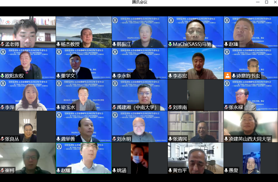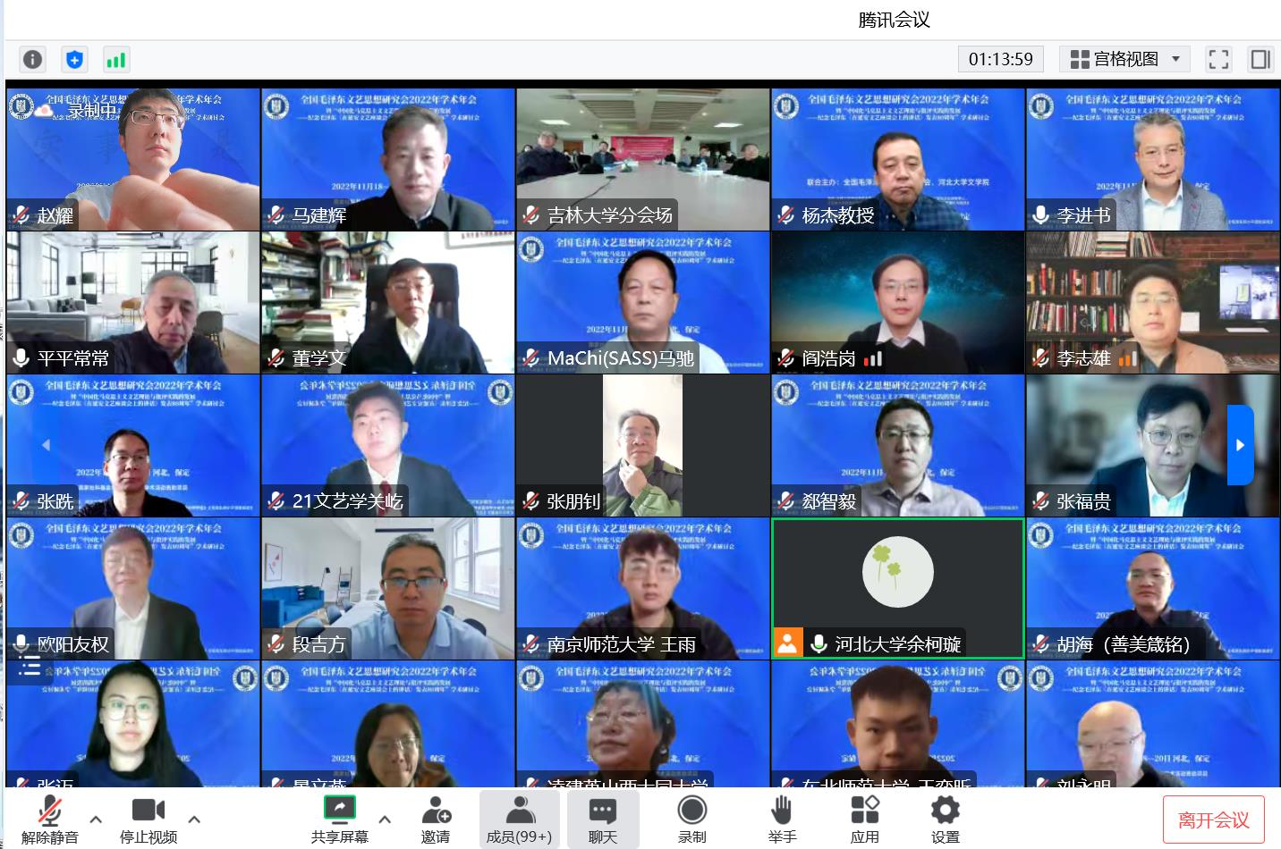 此次年会由全国毛泽东文艺思想研究会、河北大学开云电子(中国)官方网站_开云电子(中国)官方网站联合主办,吉林大学中国当代马克思主义文艺学研究中心、河北大学红色文学与文化研究中心、《吉林大学社会科学学报》《毛泽东邓小平理论研究》《学习与探索》《文艺理论与批评》《福建论坛》《中国文学研究》《河北大学学报》(哲社版)协办。会议受到2022年国家社科基金社科学术社团主题学术活动资助支持。来自北京大学、北京师范大学、吉林大学、中国社会科学院、求是杂志社、中南大学、山东大学、中国人民大学、南开大学、河南大学、河北大学等高校、科研院所及出版机构的专家学者、博士硕士研究生近200人参加了本次研讨会,提交论文148篇。
