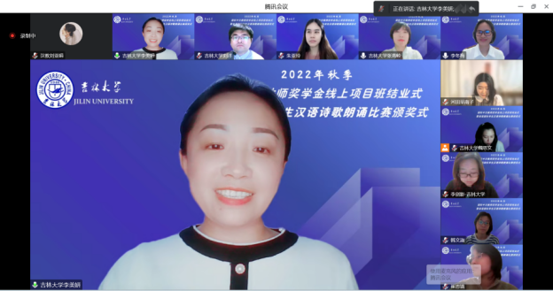 “国际中文教师奖学金线上项目”是在全球疫情背景下、在“互联网+国际中文教育”的新发展趋势下,由教育部语合中心设立的旨在为海外中文学习者继续学习提供的奖学金项目,目标是进一步提升本土教师的专业知识和职业素养,建设一支教育教学水平高、契合国际中文教育事业发展的本土卓越教师队伍。本项目由吉林大学国际教育学院牵头申报、国际语言学院承接完成。本次线上会议由国际语言学院语言部主任李美妍老师主持。