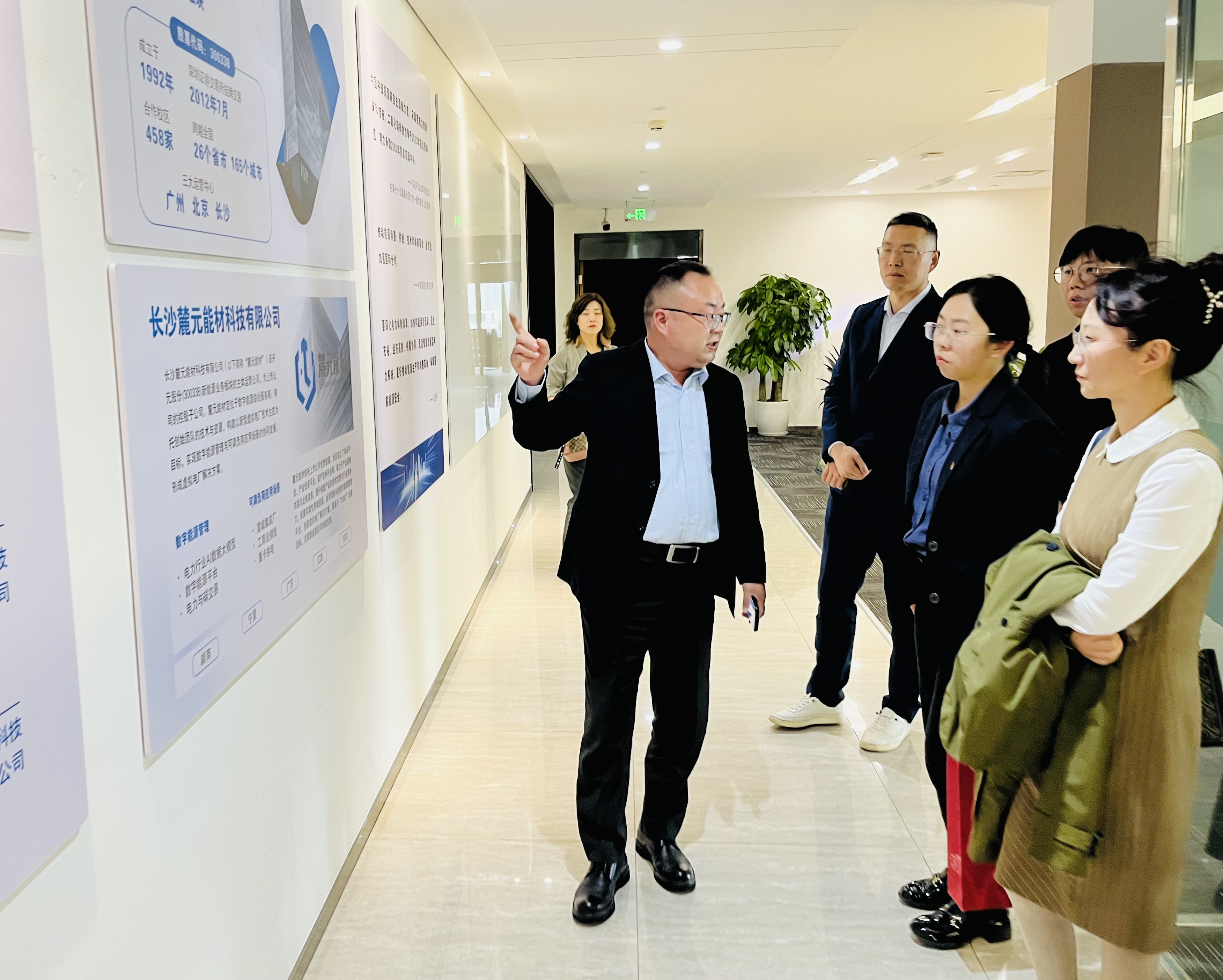 在长沙市岳麓区梅溪湖产业园区,杨一博一行走访参观两家校友企业,深入了解企业的经营模式、发展历史、企业文化。参观结束后,杨一博与长沙麓元能材科技有限公司陈天扬、湖南中技华软知识产权基金管理有限公司张瑶进行交流座谈,杨一博介绍了我院毕业生整体情况和就业需求,双方就实践基地建立、就业实习岗位转化等事宜进行深入交流。