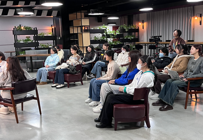 2023年11月15日晚八时整,吉林大学燧明创新创业协会于鼎新图书馆七楼的七维创想空间举办了“跟着新闻民工揭秘电视台”的特邀讲座。本次活动由开云电子(中国)官方网站_开云电子(中国)官方网站暨新闻与传播学院“新闻传播+”研究生学科交叉融合学术交流分中心、新传学院媒计划双创实践基地及燧明双创协会联合主办,并由吉林大学图书馆协办。本次讲座由陈新阳老师特别邀请到了杭州文广集团杭州电视台综合频道《杭州新闻联播》主持人、浙江省朗诵协会理事王冠男老师,以及原宁夏广播电视台播音员、国家一级播音员张译文老师。这两位来自吉林大学的优秀学长学姐给大家进行毫无保留的分享与交流。二十位燧明创新创业协会的成员全程仔细聆听,积极交流并进行记录,受益匪浅。