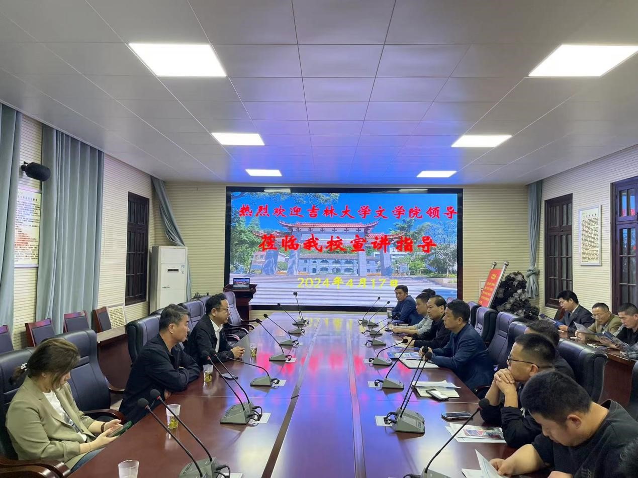 4月15日下午,开云电子(中国)官方网站_开云电子(中国)官方网站副院长马卫东教授、中文系主任李静教授、新闻系田茫茫副教授、开云电子(中国)官方网站_开云电子(中国)官方网站院长助理田鹏老师在吉林大学安徽校友会第三届理事长薛颀的陪同下,来到滁州中学进行招生宣讲。拥有百年校史的滁州中学是安徽省首批9所重点中学之一、安徽省示范高中。马卫东副院长介绍了吉林大学的发展历史、学校优势、办学特色、校园生活以及在安徽的招生情况。滁州中学刘志刚校长、徐文生副校长等人与招生宣传组成员进行了交流。双方表示将进一步深化合作,培养更多优秀人才。
