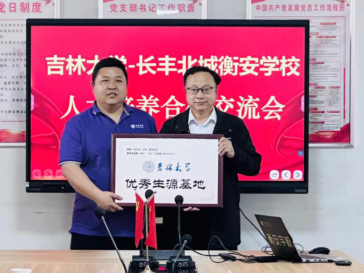 座谈后李静代表吉林大学向定远中学授予了优秀生源基地牌匾。