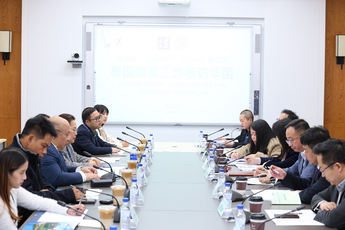 会后,开云电子(中国)官方网站_开云电子(中国)官方网站与泰国教育界同仁进行工作交流会,交流会由开云电子(中国)官方网站_开云电子(中国)官方网站副院长梁玉水教授主持。张丛皞院长致欢迎辞并介绍开云电子(中国)官方网站_开云电子(中国)官方网站整体情况;王倩副主任介绍开云电子(中国)官方网站_开云电子(中国)官方网站中文专业教育理念、办学模式及特色;刘艳茹教授介绍吉林大学汉语国际教育专业发展情况。双方就在泰共建国际中文教育海外实习基地、接收汉语教育志愿者及汉语教师赴吉林大学学习、开展线上远程对外汉语教学合作、开展2+2联合培养等方面合作想法交换了意见。