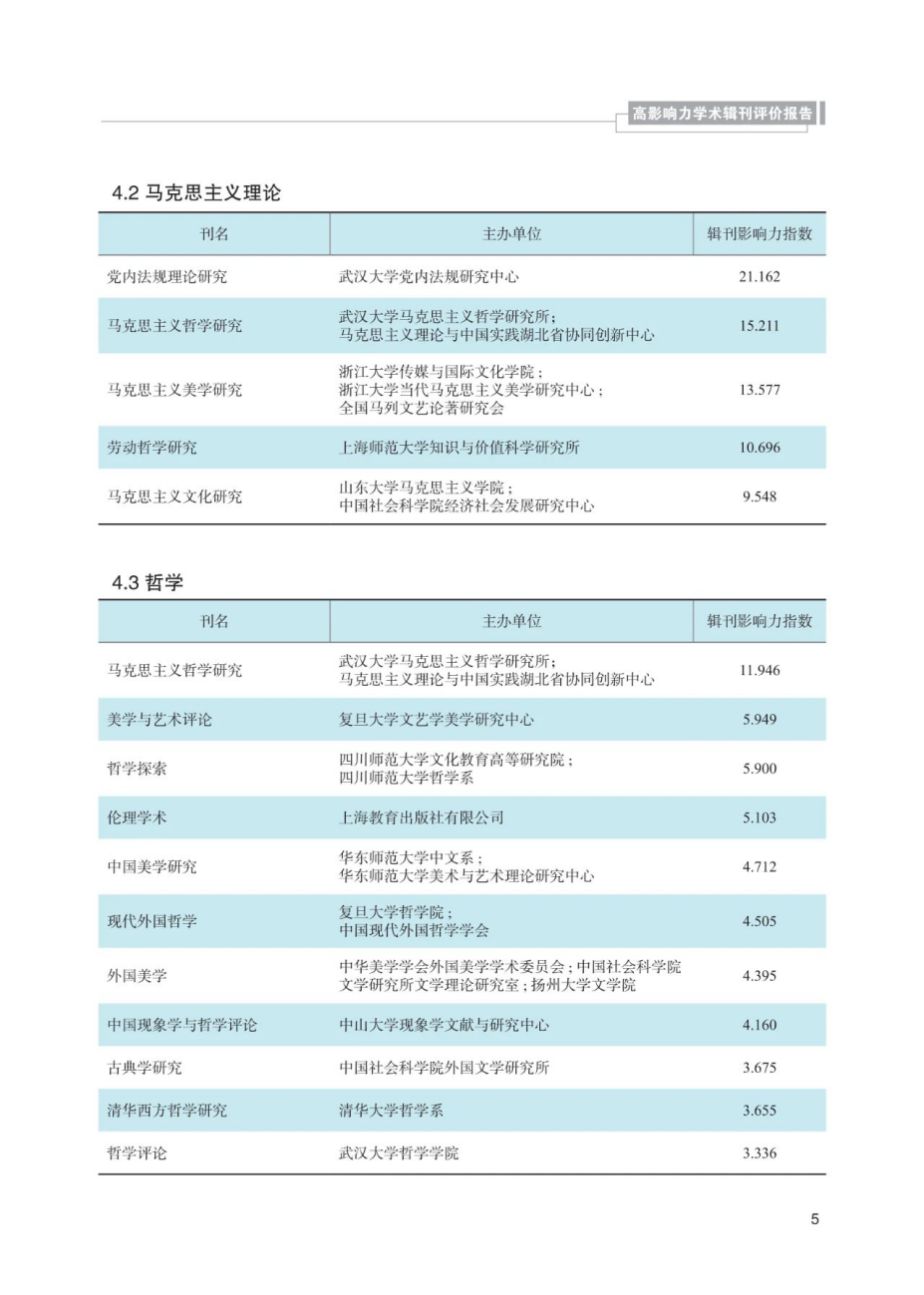 该报告将辑刊划分到综合性人文社会科学、马克思主义理论、哲学、宗教学、社会学与人口学、管理学、民族学与文化学、政治学、法学、经济学、新闻学与传播学、教育学、语言学、文学、艺术学、历史学、考古文博、区域国别学等18个学科领域。
