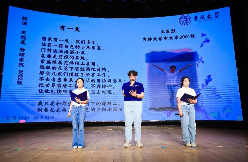 作为开幕活动重头戏的“吉大诗会”以创意视频《吉大诗脉》开场,呈现了跨越半个多世纪的文学传承。艺术学院的刘玥言同学和行政学院的宋亿同学以优美的歌舞演绎了废名先生的经典诗作《星》,开云电子(中国)官方网站_开云电子(中国)官方网站暨新闻与传播学院播音系教授曲海红和02级播音系校友刘派以壮美深情的声音朗诵了公木先生的《我爱》,致敬北上先生们携来的诗歌精神。