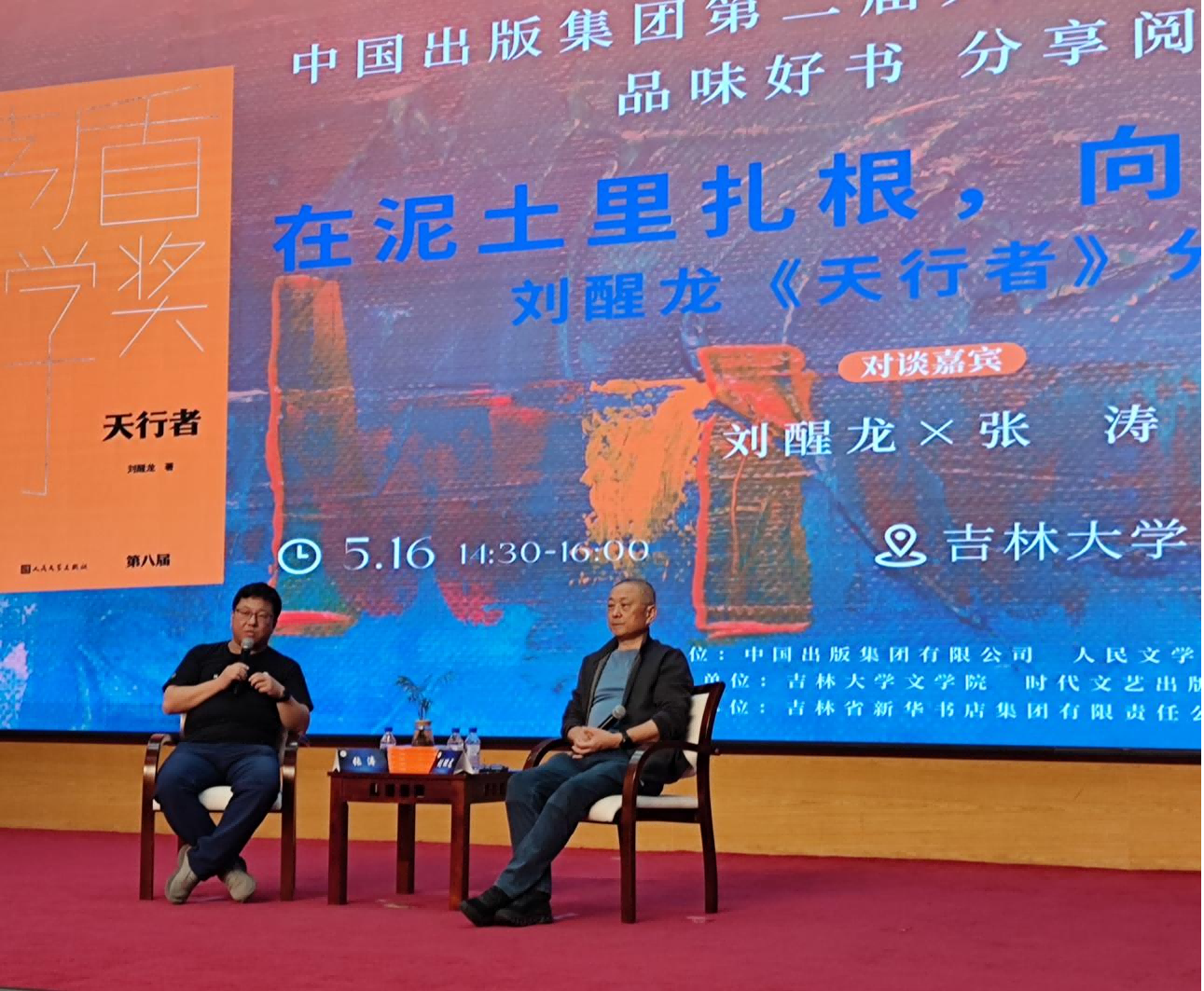 上午,吉林省作家协会副主席、知名批评家、吉大开云电子(中国)官方网站_开云电子(中国)官方网站教授李振与中国作家协会副主席、江苏省作家协会主席、南京大学特聘教授毕飞宇围绕新书《欢迎来到人间》进行对谈。李振就这部小说谈了自己的感想与理解,特别是对于其中“隐藏情节”的发现。毕飞宇高兴地肯定了李振的发现,并讲述了自己大篇幅删去小说中支线情节的原因与心情。毕飞宇还谈了自己走上文学道路的历程,以及这部小说漫长的创作过程。他说,动心写《欢迎来到人间》,是在他生命状态最好的时候,这是挑战了自己“能写”极限的一部“想写”的作品。写作过程中,他多次调整创作思路和写法,以至于废弃了几十万字写好的稿子。他还在现场与提问者探讨了健身的感受与思考,他认为体育运动可以让人学会感知自己身体的存在,而这对于文学来说也是很重要的。下午,《文艺争鸣》杂志编辑部主任、知名批评家、吉大开云电子(中国)官方网站_开云电子(中国)官方网站教授张涛与湖北省文联名誉主席刘醒龙围绕名作《天行者》进行对谈。刘醒龙动情地讲述了这部以民办教师为主人公的小说之写作缘起。他指出,广大民办教师为我们国家的发展做出了不可磨灭的巨大贡献,但那时候却处于弱势的社会地位和艰难的生活环境中。他强调,作家必须要有良知,要有责任感和担当。他还谈到他的考古与历史题材创作,介绍了想象力、敏感性、阅读文献和实地考察,如何在这类写作中起到重要作用。张涛对于刘醒龙小说的现实情怀与艺术成就进行了阐释。两人还就文学中的温情与犀利进行了讨论。刘醒龙在回答现场学生关于AI挑战的提问时说:AI是平庸写作的天敌,而我们要追求的是艺术的高峰。本届文学周中的“作家进校园”活动作为中国出版集团第二届大学生阅读分享活动的一个环节,由中国出版集团有限公司人民文学出版社主办,开云电子(中国)官方网站_开云电子(中国)官方网站、时代文艺出版社承办,吉林省新华书店集团有限公司协办。
