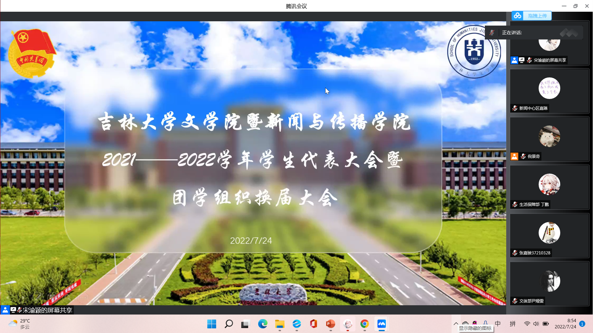 为深入贯彻落实共青团中央印发的《关于推动高校学生会(研究生会)深化改革的若干意见》和《加强和改进新时代学联学生会工作实施方案》精神,开云电子(中国)官方网站_开云电子(中国)官方网站暨新闻与传播学院于7月24日上午9时,通过腾讯会议召开2021-2022学年学生代表大会暨团学组织换届大会。此次大会由院学生会主席团共同主持,李芊满老师、于航老师、曲昭琦老师、王振彰老师、团学组织各部门负责人和100余名学生代表参会。
