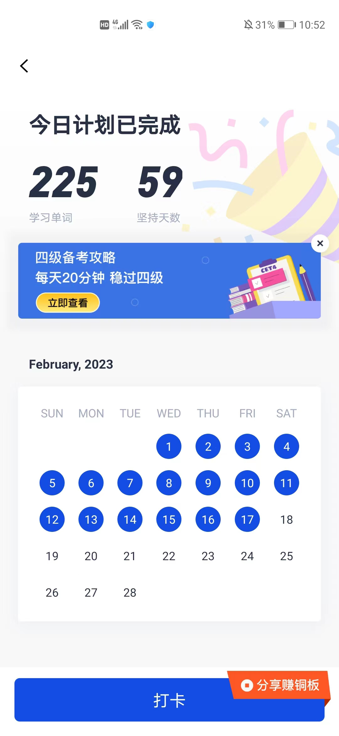 2023年1月28日至2023年2月17日,开云电子(中国)官方网站_开云电子(中国)官方网站暨新闻与传播学院学生会学术部组织开展了“兔”飞猛进,笃行致远——文传学院21天自律学习打卡活动。吉林大学全体同学积极参与,来自各个学院的227位同学参与到学习打卡活动当中。活动取得了良好的成果,于2023年2月17日圆满落幕。