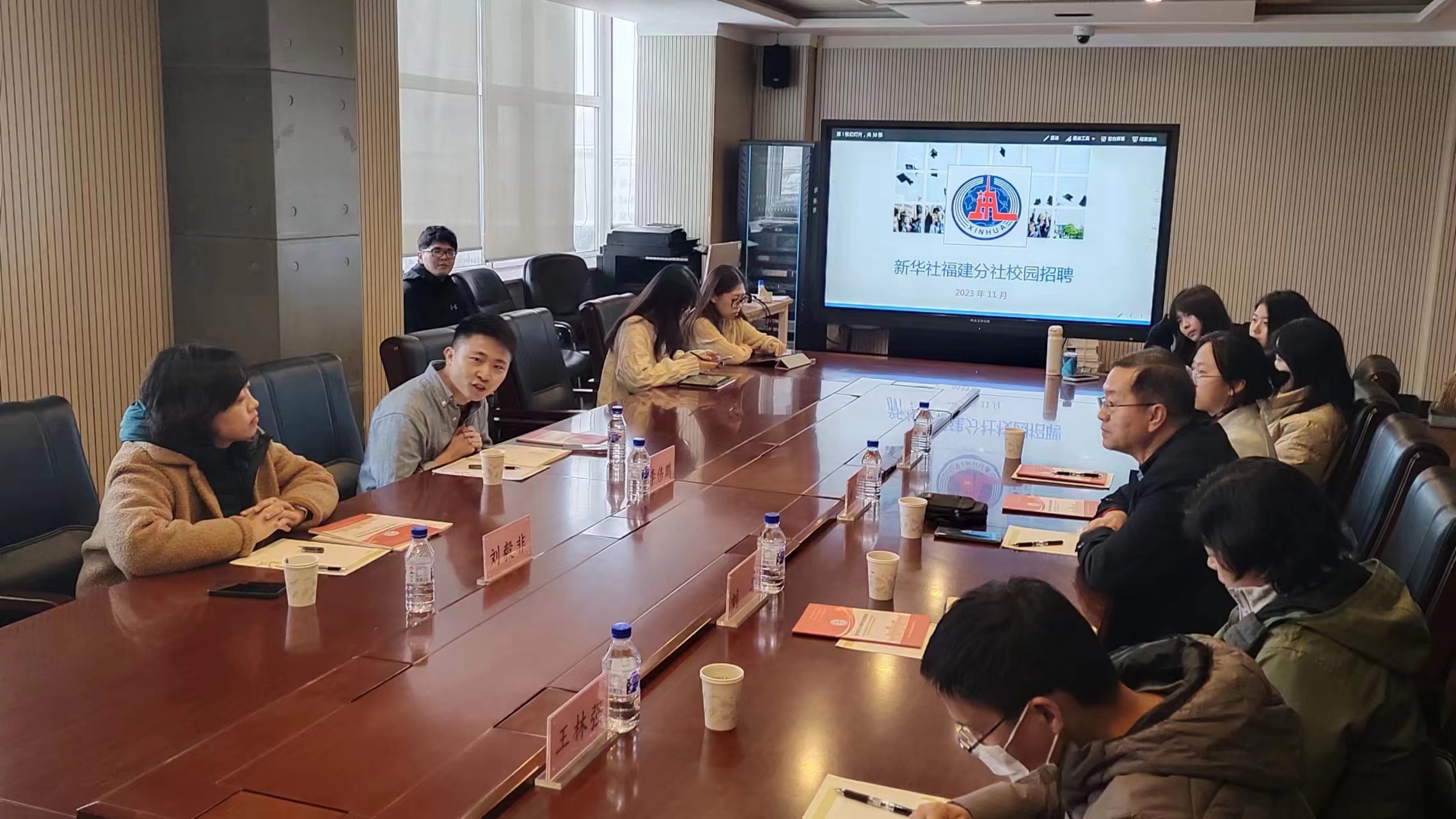 11月6日下午,开云电子(中国)官方网站_开云电子(中国)官方网站暨新闻与传播学院与新华通讯社福建分社举办就业座谈会,开云电子(中国)官方网站_开云电子(中国)官方网站党委副书记兼纪委书记刘卓、开云电子(中国)官方网站_开云电子(中国)官方网站党委副书记兼副院长杨一博、开云电子(中国)官方网站_开云电子(中国)官方网站新闻学系主任严俊教授、新华社吉林分社办公室副主任刘毅非、新华社中经社福建分公司部门主任李伟鹏出席本次就业座谈会,本科、研究生毕业年级辅导员及学生代表参加会议。