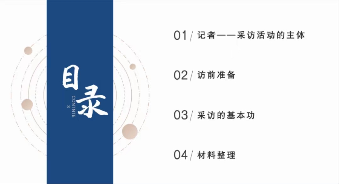 会议第一项,开展第三场寒假班新闻实务培训。本次培训的主题为《新闻实务——采》,主讲人为刘晨欣。作为采访活动的主体,记者应当具有采写新闻、研判舆情和沟通公众的职责。因此,采访是记者重要的基本功。刘晨欣从“记者——采访活动的主体”“访前准备”“采访的基本功”“材料整理”四个方面详细地介绍了采访的相关事宜,着重强调了记者的主体意识、访前准备的原因、访前准备的方法、采访计划制定方法等。同学们纷纷表示收获满满。