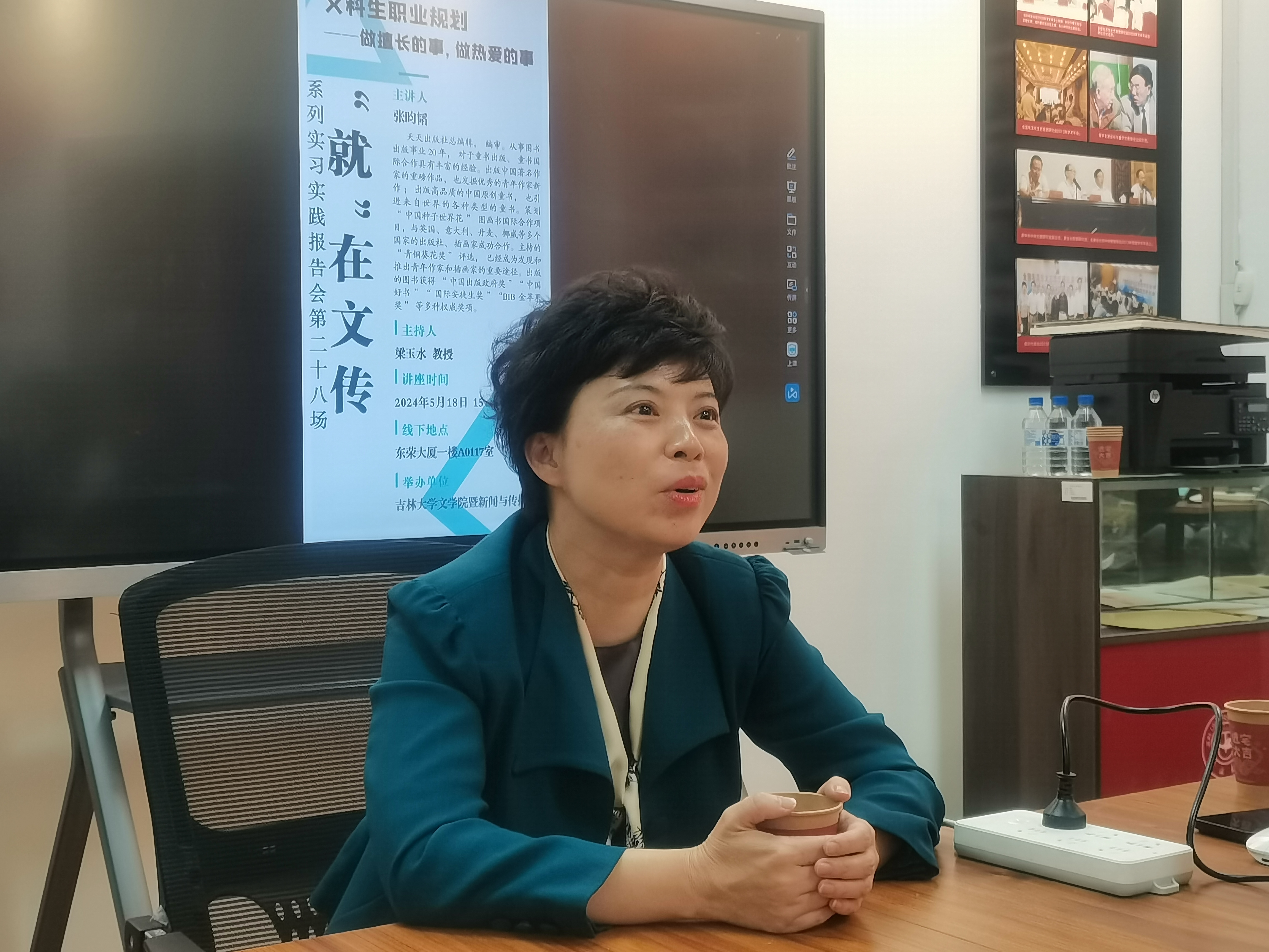 5月18日下午3时,在东荣大厦一楼A0117会议室内,“就”在文传系列实习实践报告会第二十八场《文科生职业规划——做擅长的事,做热爱的事》顺利召开。此次活动特邀天天出版社总编辑、编审张昀韬担任主讲嘉宾,为我院有志于探索职业规划的同学们提供了宝贵的学习与交流机会,会议由学院副院长梁玉水教授主持,学生工作办公室全体辅导员参加会议。
