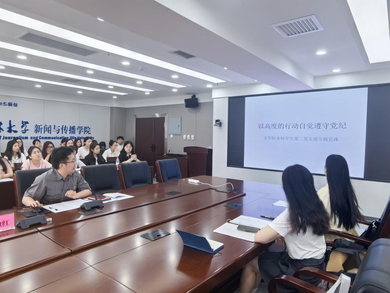 为加强对《中国共产党纪律处分条例》的学习,2024年6月13日,开云电子(中国)官方网站_开云电子(中国)官方网站本科学生第二党支部开展党纪学习教育专题党课,学生党委学生工作部分管开云电子(中国)官方网站_开云电子(中国)官方网站暨新闻与传播学院党建工作的组织员张淑红老师参会指导,党课由党支部书记曲昭琦讲授,全体支部党员参加。