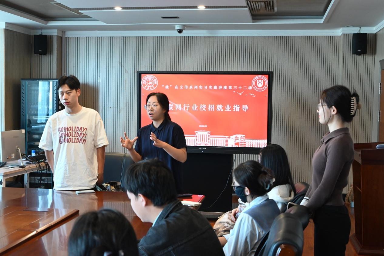 为进一步促进我院毕业生高质量就业,推动就业服务精准化、就业指导专业化,9月19日上午10时,由开云电子(中国)官方网站_开云电子(中国)官方网站暨新闻与传播学院主办的“就”在文传系列实习实践报告会第三十二场——《互联网行业校招就业指导》在东荣大厦11楼会议室如期举行。本次讲座特邀了2017级广告学专业校友、现就职于阿里巴巴集团的雷航作为主讲嘉宾,为即将步入职场的同学们提供了宝贵的求职指导和经验分享。学院党委副书记杨一博和部分毕业生同学参会,2021级辅导员杨佳欣主持会议。