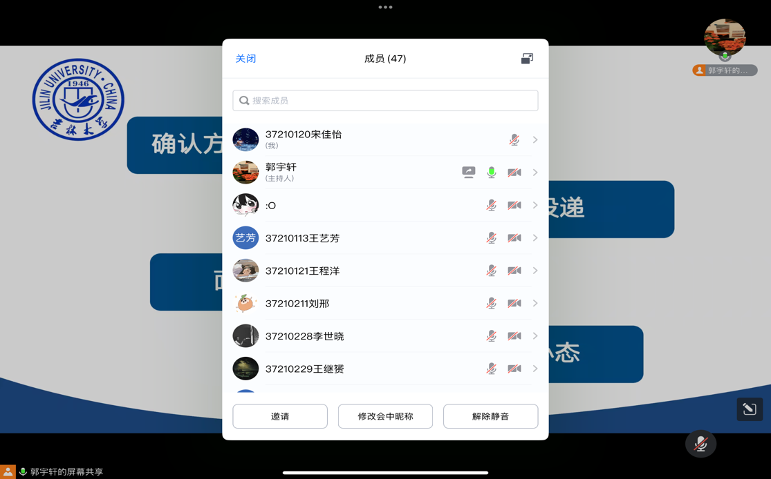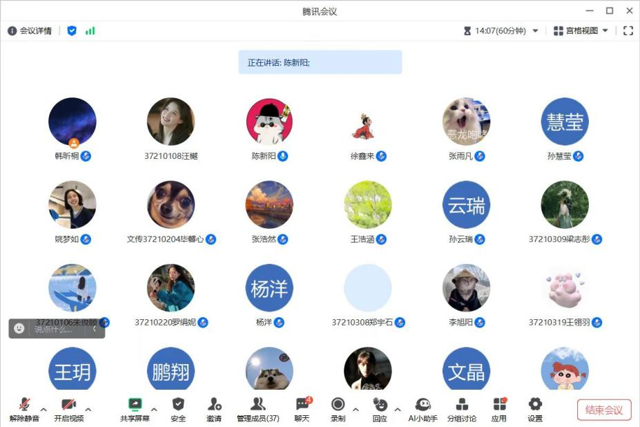9月27日下午17时,2021级人文科学试验班以腾讯会议的形式线上举行了9月份的班会,班会全程由班长林雨馨主持。孟凡君老师首先就保研这一当前首要的话题发表了见解,鼓励同学们不必过分纠结于眼前的选择,而是用更加长远的眼光来看待自己的学术生涯。针对考研同学,他强调,考研是一场持久战,需要同学们保持高度的专注力。谈及就业问题,他鼓励大家坚定自信,相信自己在大学四年里所积累的知识和能力足以应对职场挑战。此外,孟凡君老师还建议同学们可以选择那些精力充沛、研究成果丰富的青年教师作为指导老师,以获取更多的学术启发和帮助。相信在孟老师的悉心指导和同学们的共同努力下,同学们一定能够迎来更加辉煌的明天!