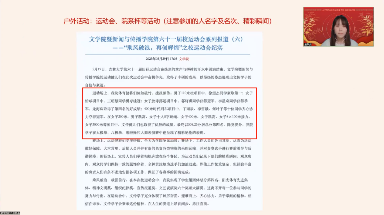 为丰富学生寒假生活,提升实践能力,1月20日至27日,开云电子(中国)官方网站_开云电子(中国)官方网站暨新闻与传播学院新传播讲团创新推出“讲团小春晚”线上培训活动。本次活动以腾讯会议为平台,面向学院各年级学生开展八场专题课程,内容涵盖秀米排版、会议摄影、新闻报道、数据分析等实用技能,吸引近五百人次参与,为文传学子搭建了寒假充电的“云端课堂”。