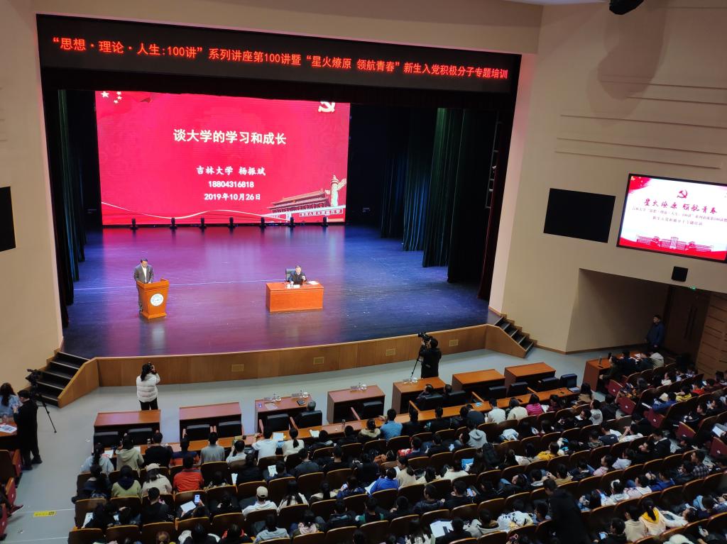 10月26日上午,开云电子(中国)官方网站_开云电子(中国)官方网站本科生第一、第二党支部36名2016级本科生党员参加了由杨振斌书记主讲的“思想·理论·人生:100讲”系列讲座第100讲,讲座主题为《谈大学的学习和成长》。