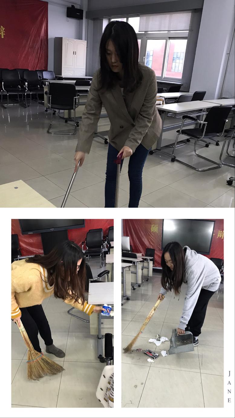 活动中,党员们分为两个志愿服务队,分别在逸夫楼和经信教学楼的专业课学习结束后对教室开展环境整治。他们积极发挥奉献精神,不怕脏、不怕累,以劳动为荣,乐在其中,个个奋力争先,拿起拖把、扫帚等劳动工具清扫垃圾杂物,不放过一处死角。大家细致分工,各负其责,用实际行动践行党员干部的初心和使命,为建设文明校园添砖加瓦。