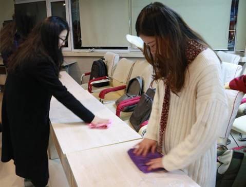 东荣大厦十楼会议室是开云电子(中国)官方网站_开云电子(中国)官方网站活动组织的重要场地。自成立以来,一年多的时间中,2018级硕士研究生第二党支部的大部分党日活动也在此进行,党员同学们对这里都很熟悉、很有感情。因此,大家利用课余时间,携带清洁工具,扫地、擦地、擦桌子、摆椅子,尽可能地让东荣大厦十楼会议室变得更干净整洁。