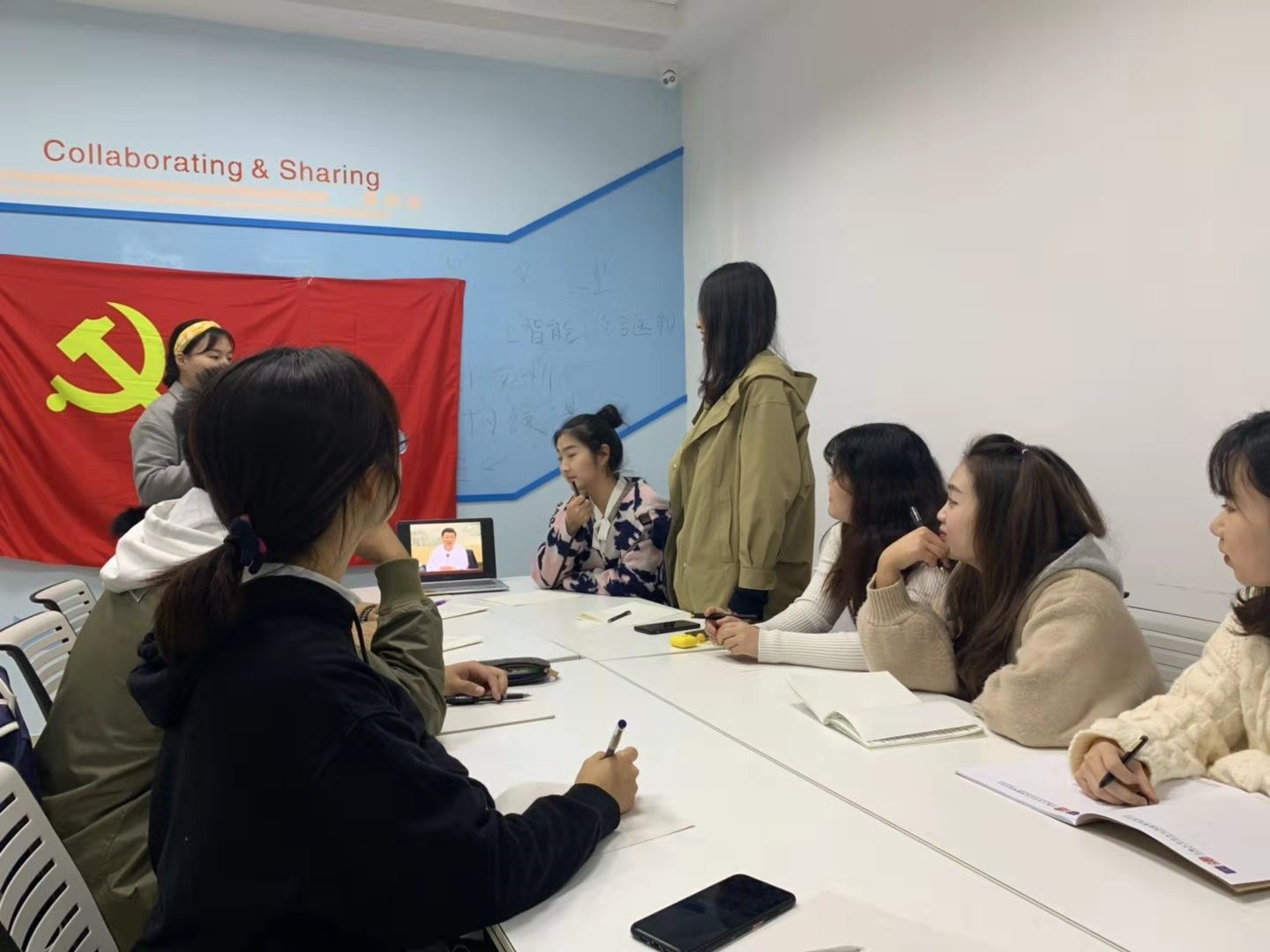 党员刘羿同学发表了自己的学习体会,她发言说:“习近平的讲话,提出系列主题教育学习活动,都正值我们的伟大祖国成立70周年之际,当前我们的国家正处于改革攻坚时期,发展任务艰巨,利益诉求多元。作为国家关键时期的一代青年人,我们要敢于承担起自己的历史责任,在学校、社会上敢于担责,不怕困难,在生活和学习上要发挥共产党员的精神一个接一个地啃“硬骨头”。”党员郭子淇同学在交流体会中说到:“我们支部的党员要以主题教育为契机,深入学习党规,深入学习习近平总书记系列重要讲话精神,不断用党的最新理念武装头脑,进一步坚定“四个自信”,增强“四个意识”。要坚决做到“两个维护”,明辨大是大非,自觉做到讲政治、顾大局、守规矩。要不折不扣贯彻落实党的各项方针政策,坚持在各项工作中起引领带动作用,着力把“四个意识”转化为思想自觉、党性标杆、纪律准绳和实际行动,以工作实效把“四个意识”要求落到实处。”