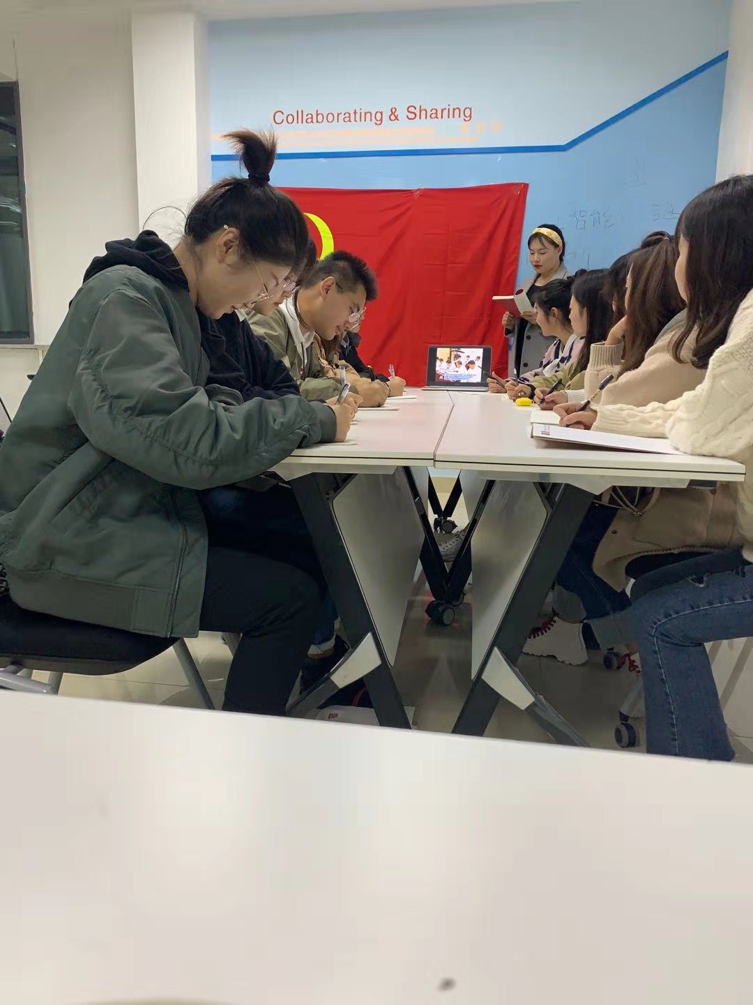 10月18日,开云电子(中国)官方网站_开云电子(中国)官方网站2019级第三党支部全体党员,在鼎新楼406开展了“不忘初心、牢记使命”主题教育中的主题党课教育活动。在党课主题教育活动之前,全体党员已经认真学习了党的十九大精神,并学习了党章、党规和习近平总书记系列重要讲话精神。在党课主题教育活动中,第三支部以党支书阐述主题,全体党员共同诵读,交流学习体会,进行观点上的交流为主要的学习形式。