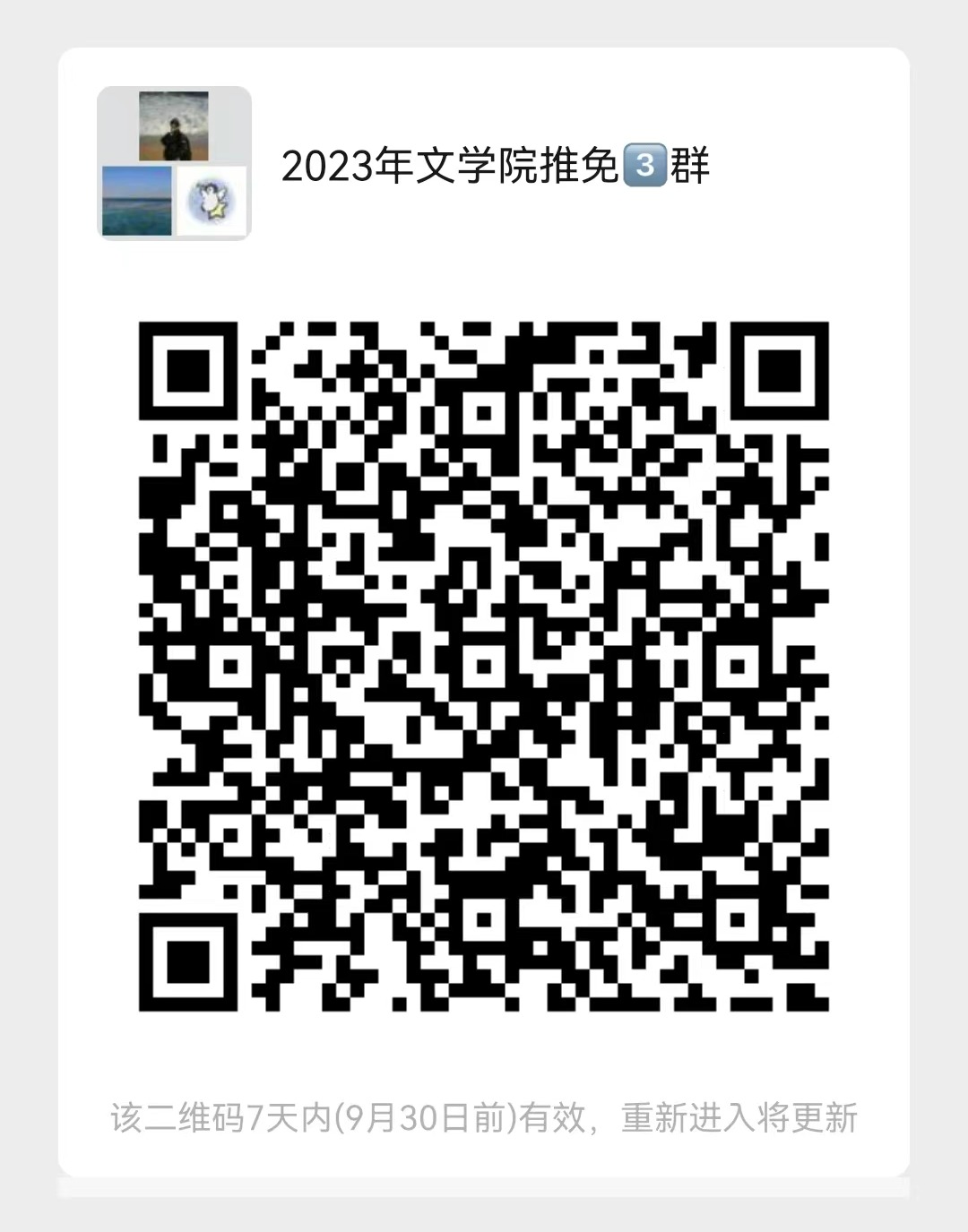 以上材料扫描件于2022年9月24日上午11:00前发送至邮箱wxyyjsxs@126.com(学硕)wxyyjs2023@126.com(专硕)。邮件命名为“姓名-报考专业-推免报名材料”,如“李四-中国史-推免报名材料”,材料分别按序号命名后以压缩包形式发送。收取材料截止时间以邮箱收到邮件显示的时间为准。参加推免的同学加入2023开云电子(中国)官方网站_开云电子(中国)官方网站推免微信群。(一群二群已满,请加三群)